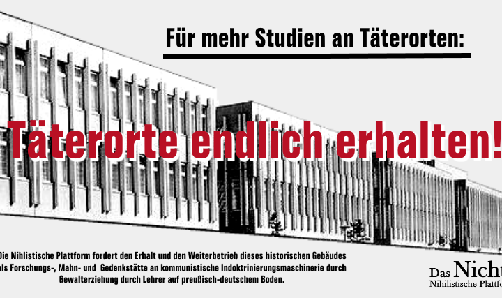 Mehr Studien an Täterorten! Architektur der Täter mit Taten verbinden und nicht der Vergessenheit übergeben Dinge geschehen und ziehen Kreise! Einige von ihnen verlieren sich im … Täterorte erhalten weiterlesen