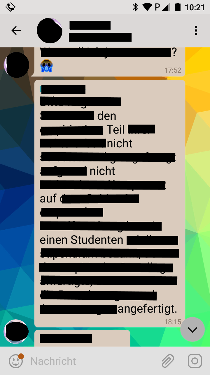 Die besagte Kurnachricht im Original mit nur kleinen Anonymisierungen